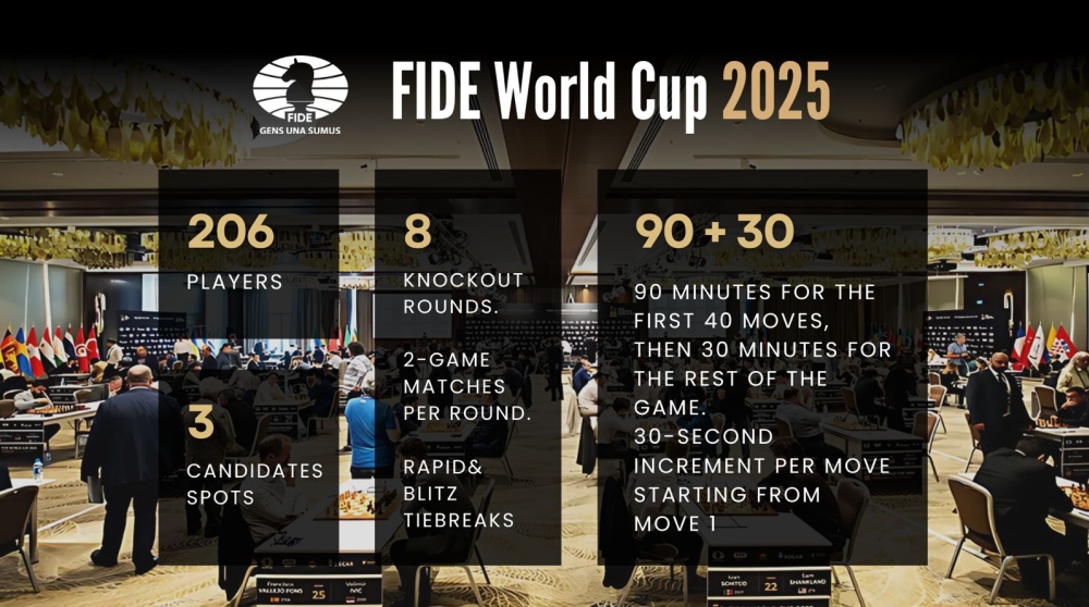 The top three finishers of the 2025 World Cup will earn direct qualification for the 2026 Candidates Tournament, which determines the challenger for the World Chess Championship.