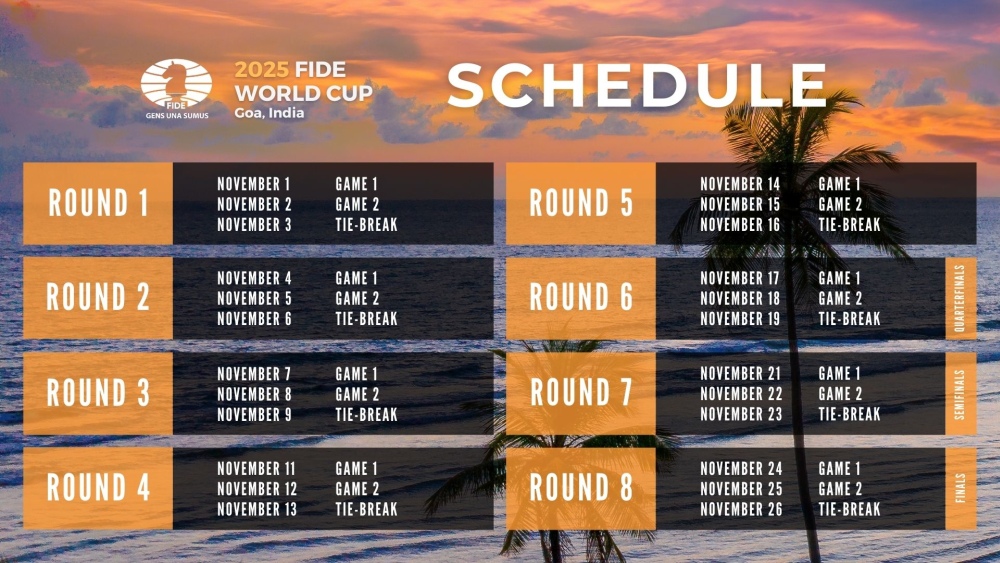 With Goa confirmed as the host city, anticipation is building for an unforgettable month of high-stakes chess. Stay tuned for more information. The countdown to the FIDE World Cup 2025 has officially begun!