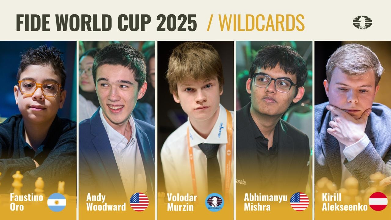 Rising stars and top performers Faustino Oro, Andy Woodward, Abhimanyu Mishra and Volodar Murzin will join well-known GM Kirill Alekseenko at the FIDE World Cup this November in India.