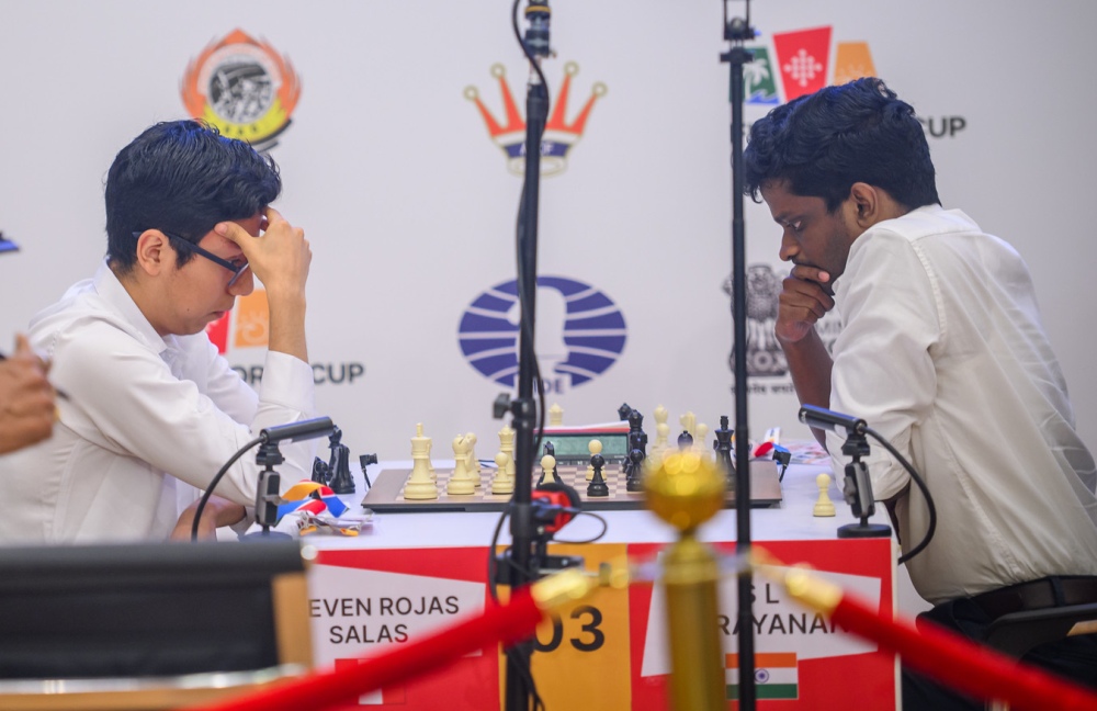 A 52-move grind with Black in the first game left Rojas Salas struggling, and Narayanan finished him off in style with a 22-move miniature in the second, capitalizing on a major blunder.