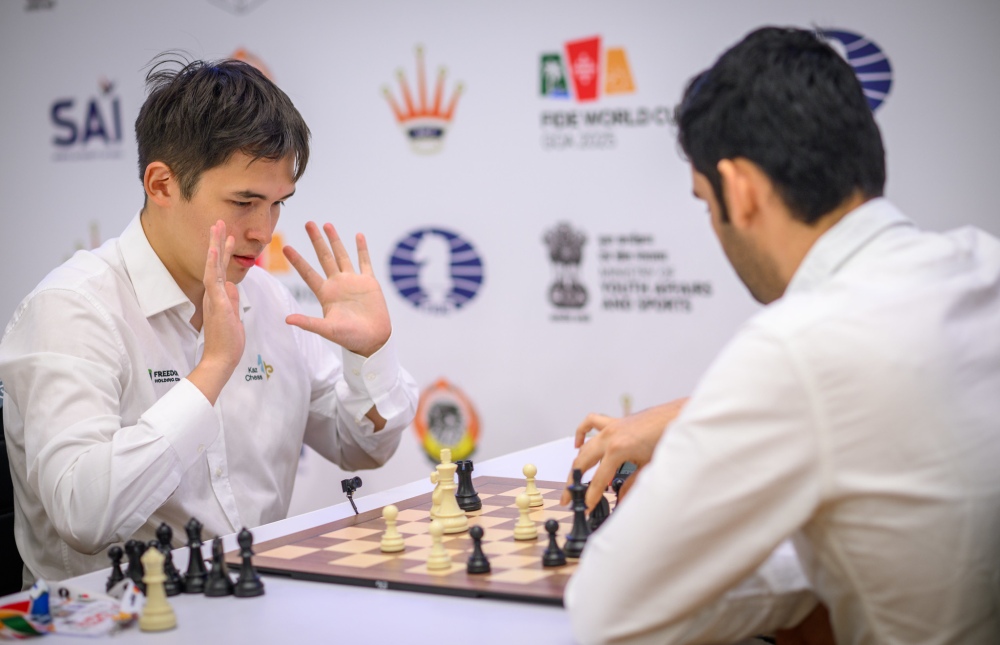 Two other tightly contested duels saw GM Kazybek Nogerbek (2538, Kazakhstan) defeat GM Raja Rithvik (2541, India), and GM Ahmed Adly (2589, Egypt) edge past GM Karen Grigoryan (2481, Armenia) — the latter still a formidable competitor and former 2650-rated player.