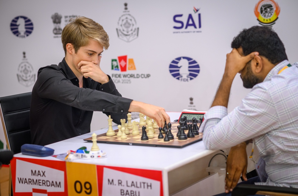 GM Max Warmerdam (2577, Netherlands) also needed blitz to overcome GM Lalit Babu M R (2506, India), in a match where momentum swung dramatically.