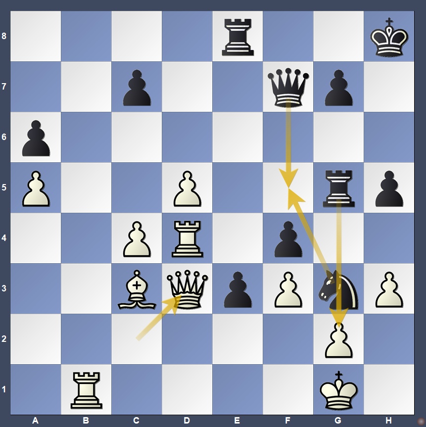After 40.Rxf4 Rxg2! 41.Kxg2 Qg6+, Black would either deliver mate or win the queen on d3 — a missed opportunity that could have turned the game decisively in Dubov’s favor.