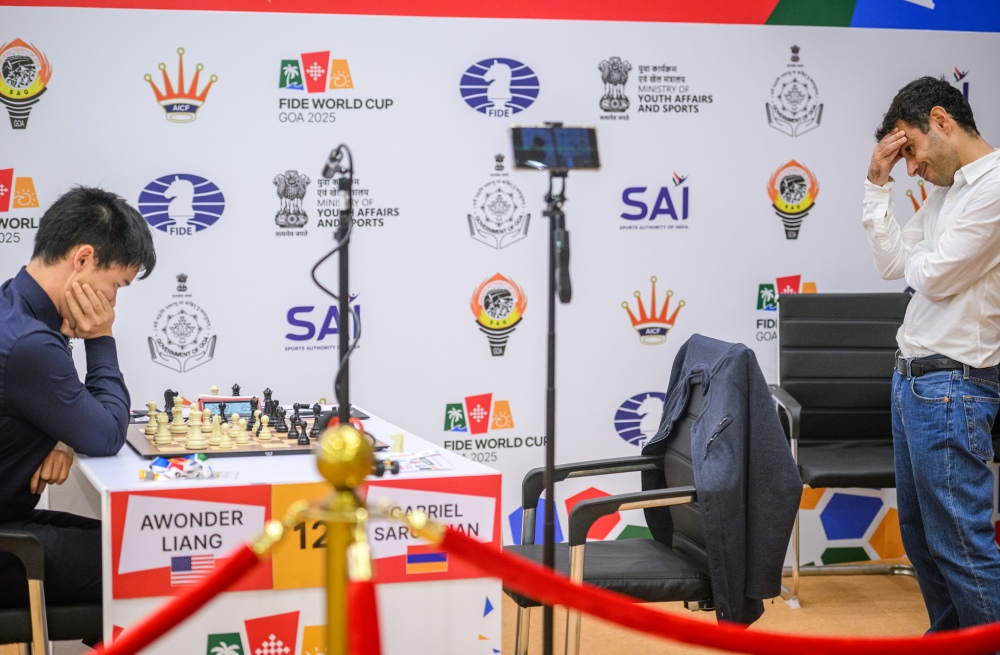 The day’s final duel, between GM Awonder Liang (2710) and GM Gabriel Sargissian (2624), was of a very different nature. The young American grandmaster obtained several promising chances but failed to convert against the ever-resourceful Armenian, who defended heroically throughout the middlegame and into the endgame.