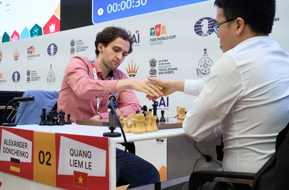 He opted for the Grünfeld, and although Lê Quang accepted structural weaknesses in exchange for initiative, Donchenko calmly turned those doubled pawns into a winning passed pawn and closed out the game under time pressure.